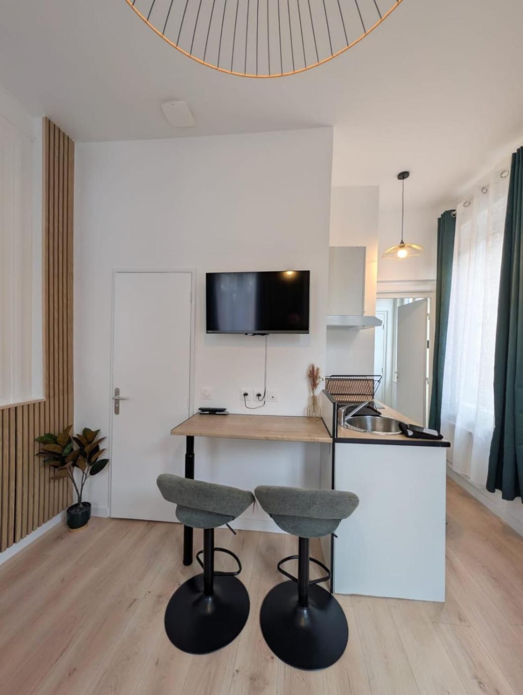 Cet appartement comporte 1 chambre, une télévision à écran plat, ainsi qu’une cuisine.