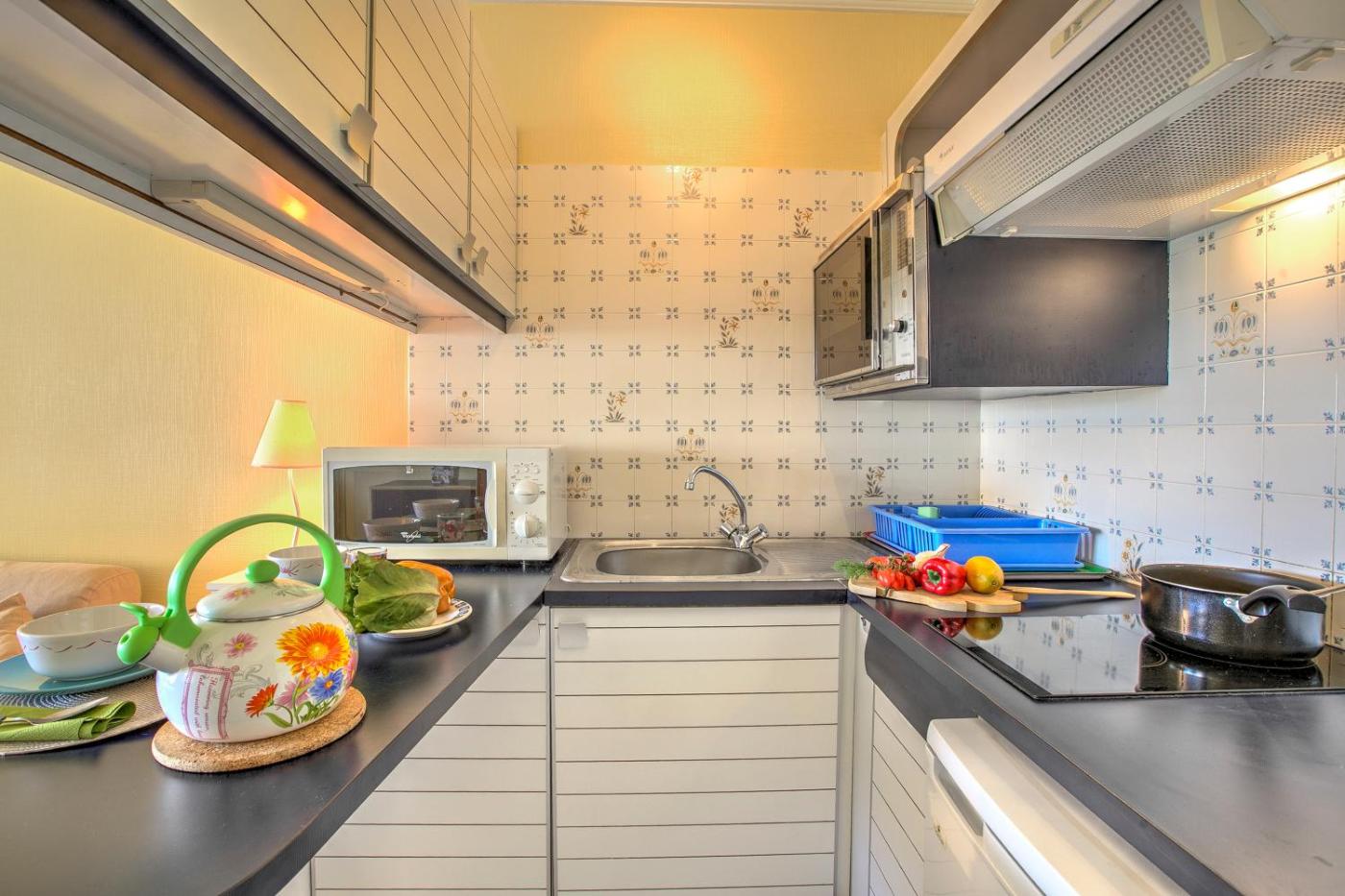 Studio avec Terrasse. In the fully equipped kitchen, guests will find a stovetop, a refrigerator, kitchenware and an oven. The studio offers a washing machine, a coffee machine, a terrace with sea views as well as a private bathroom boasting a bath. The unit has 2 beds.