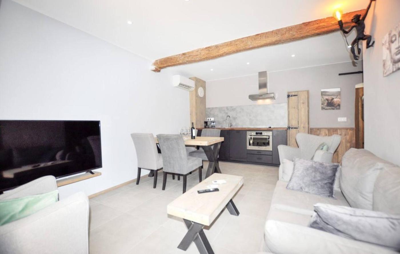 Cet appartement avec climatisation se compose de 1 chambre, dun salon, dune cuisine entièrement équipée avec un réfrigérateur et une machine à café, ainsi que de 1 salle de bains avec une douche. Des serviettes et du linge de lit sont à disposition.