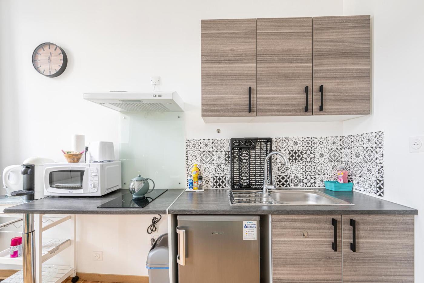 Studio Supérieur. Offering free toiletries, this studio includes a private bathroom with a walk-in shower and a hairdryer. In the kitchen, guests will find a stovetop, a refrigerator, kitchenware and a microwave. The studio offers a private entrance, soundproof walls, a tea and coffee maker, a flat-screen TV with streaming services, as well as city views. The unit has 1 bed.