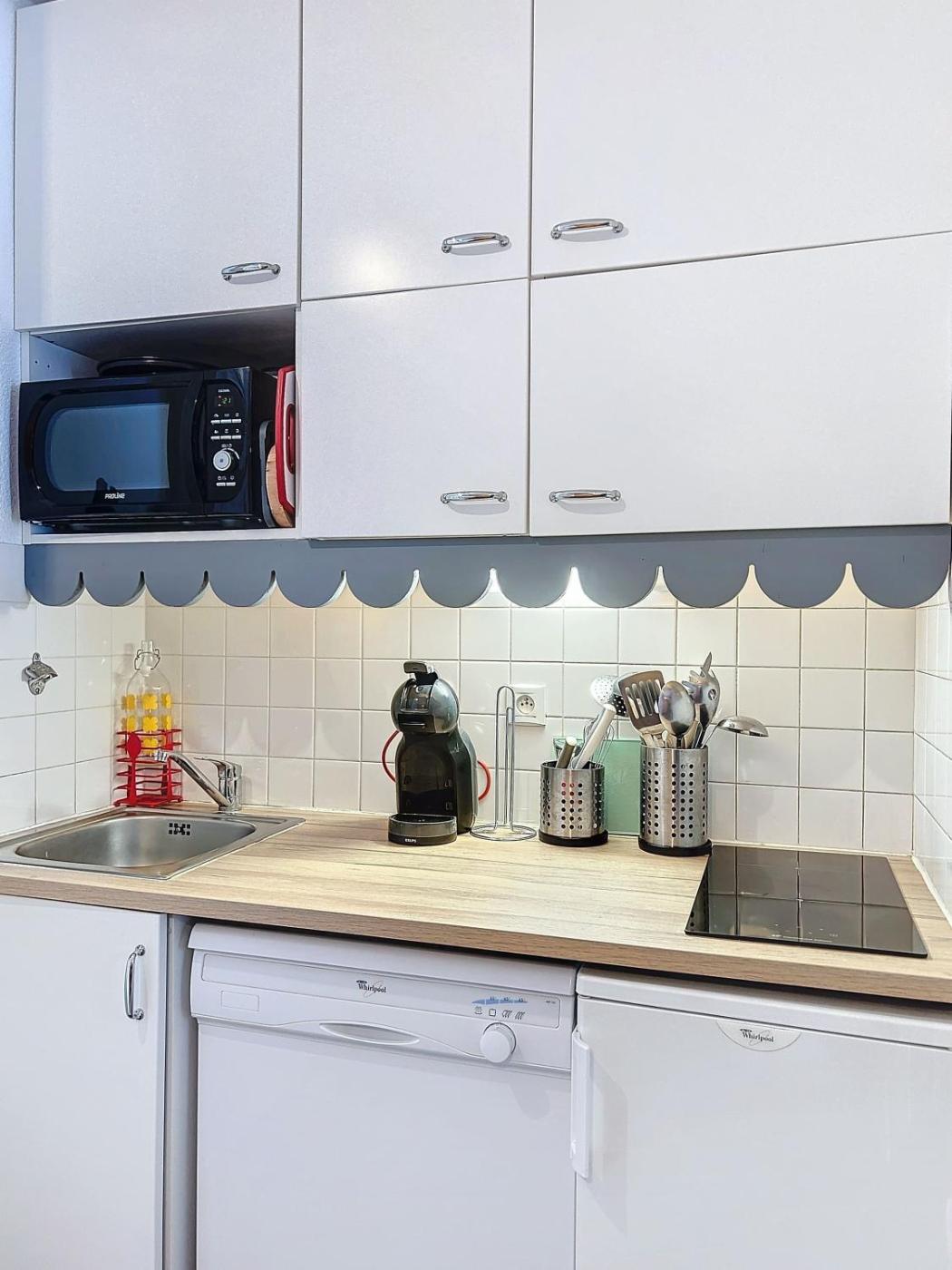 Cet appartement possède une terrasse, 2 chambres, un salon et une cuisine bien équipée. Une télévision à écran plat est à votre disposition.