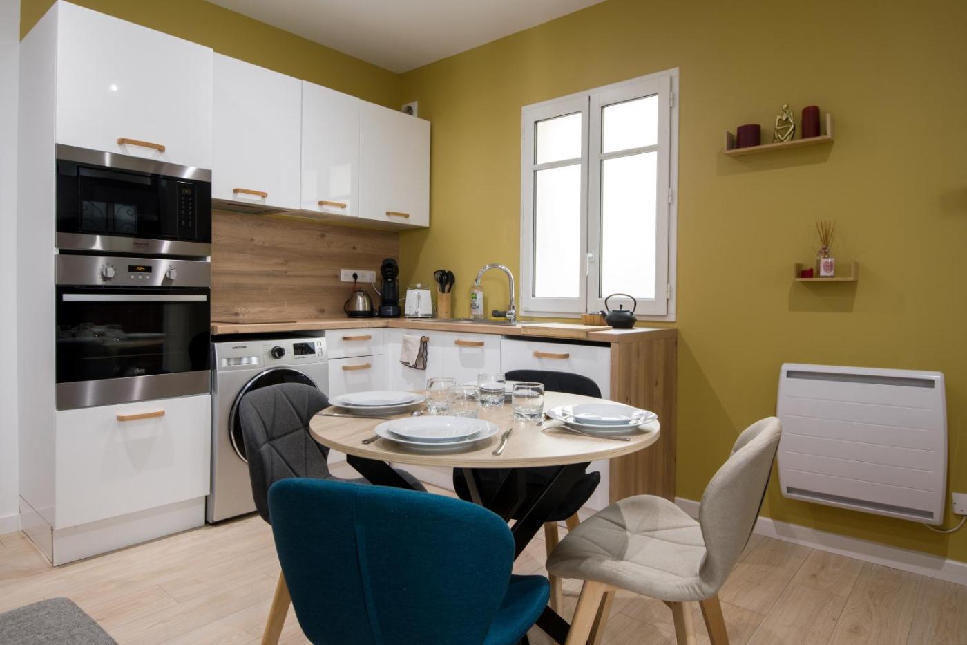 Appartement 1 Chambre. The apartment features 1 bedroom and 1 bathroom with a shower and free toiletries. Meals can be prepared in the well-fitted kitchen, which is equipped with a stovetop, a refrigerator, an oven and a microwave. The apartment provides a washing machine, a tea and coffee maker, a sofa, parquet floors, as well as a flat-screen TV. The unit offers 1 bed.