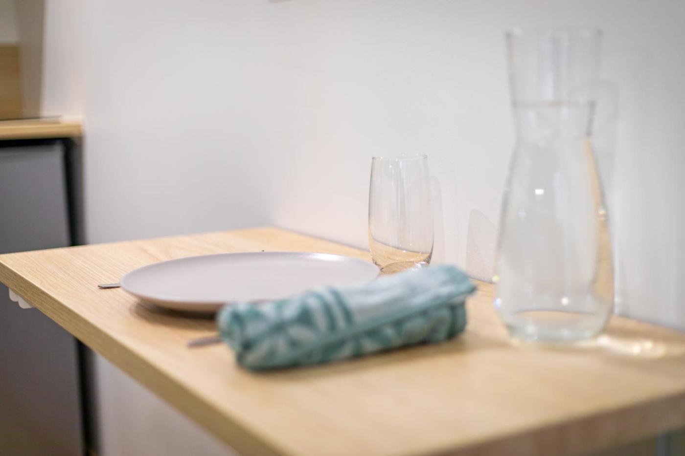 Les assiettes, les couverts, les verres et les autres éléments de la vaisselle sont désinfectés